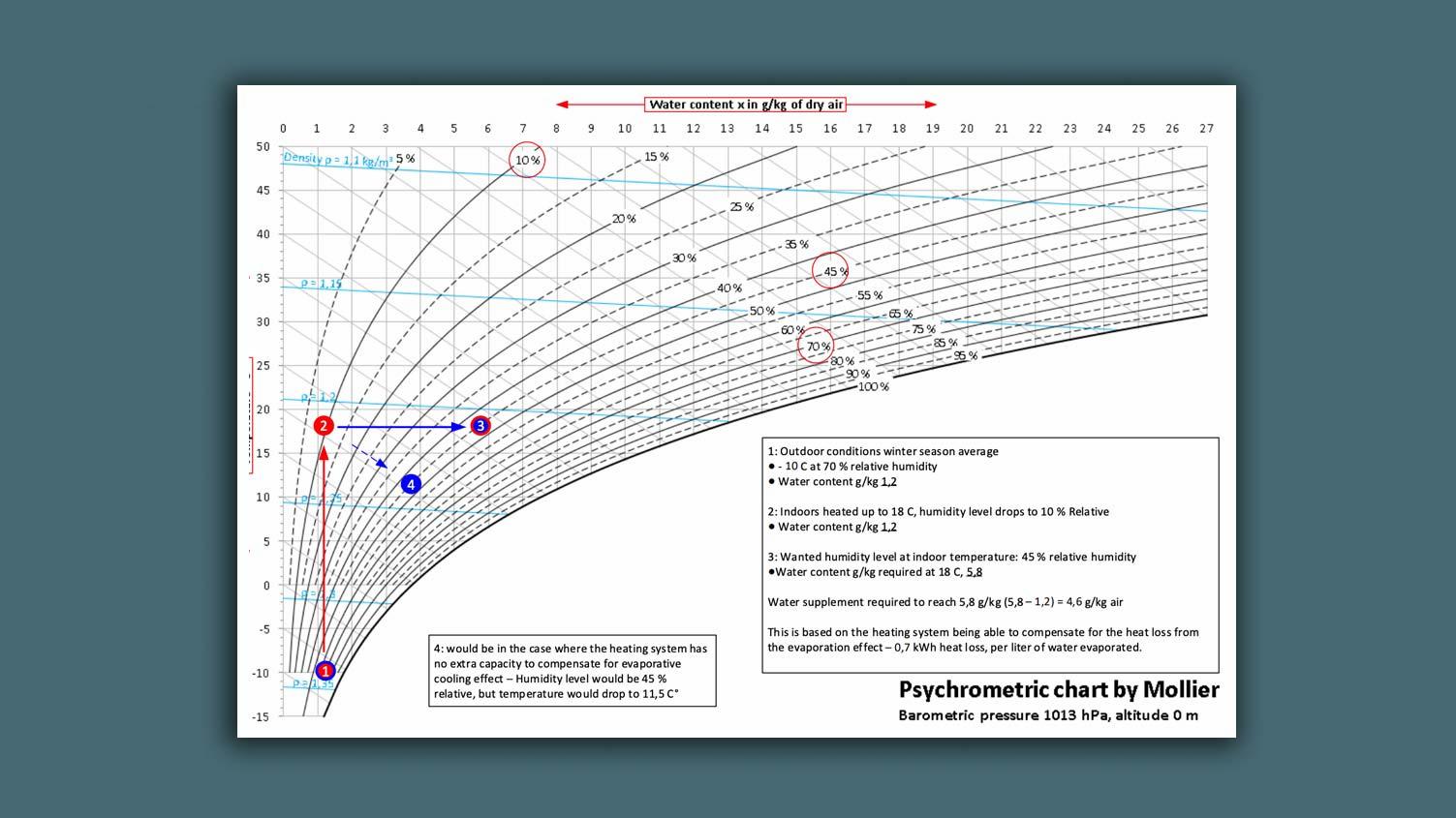 In this example, we are looking at winter conditions: -10° C, 70% relative humidity (RH).